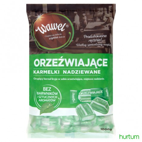 Chrupiący karmel kryje w sobie orzeźwiające, miętowe nadzienie.