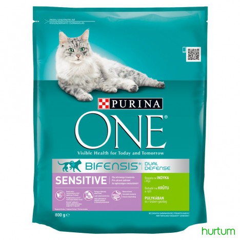 PURINA ONE Sensitive została opracowana specjalnie dla zdrowia i dobrego samopoczucia kotów z wrażliwym przewodem pokarmowym i wybrednych.