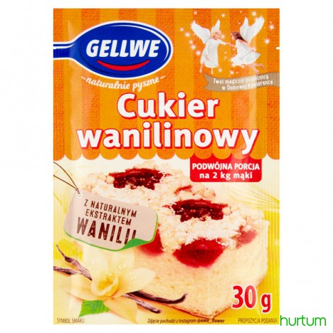 Kruszonka: 150 g mąki pszennej, 100 g masła, 2 łyżki cukru, 1 łyżka cukru wanilinowego Gellwe.