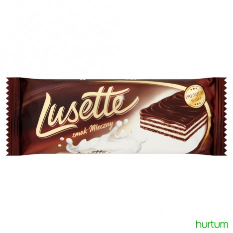 Kruchy wafelek przekładany kremem (70%) o smaku mlecznym w polewie kakaowej.