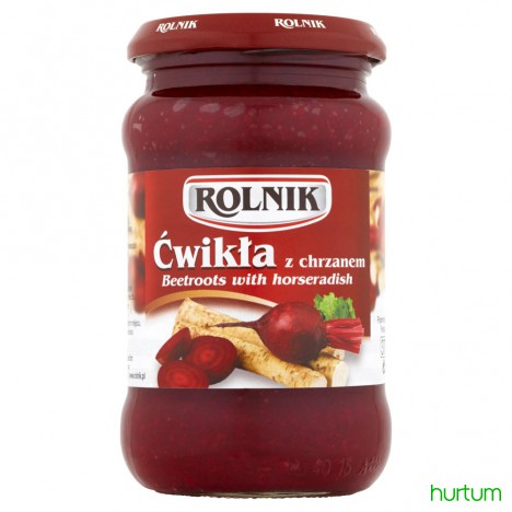 Buraki ćwikłowe z chrzanem, tarte. Produkt pasteryzowany.