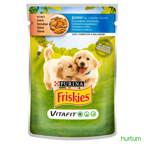 Karma mokra dla szczeniąt PURINA Friskies Puppy VitaFitTM Saszetka 100 g z kurczakiem i marchewką w sosie