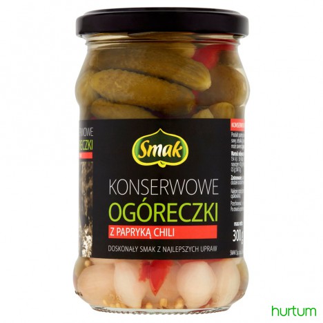 Konserwowe ogóreczki z papryką chili. Produkt pasteryzowany.
