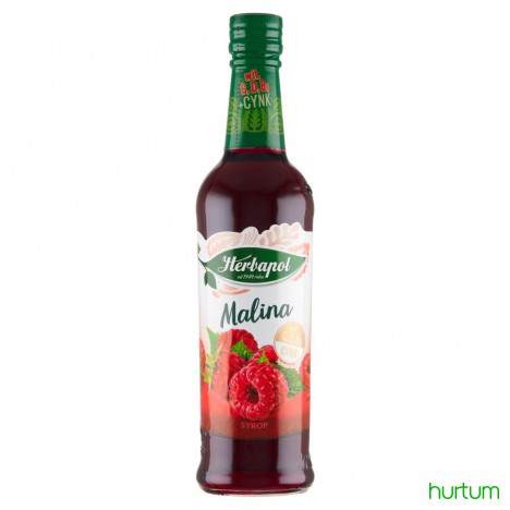Syrop o smaku malinowym z dodatkiem witamin i cynku, pasteryzowany.