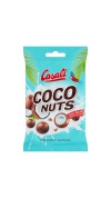 Draże kokosowe z płynnym nadzieniem (10%) z dodatkiem rumu, z ciemną czekoladą (9%), w polewie z mlecznej czekolady (59%).