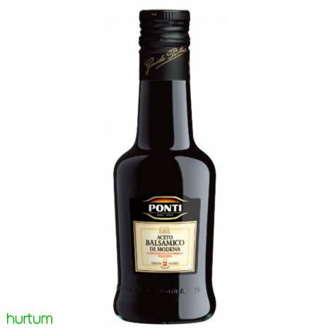 Tradycyjna włoska receptura z Modeny. Ocet balsamiczny z Modeny firmy Ponti od razu zachwycił włoskie podniebienia! Otrzymywany jest poprzez mieszanie octu winnego i gotowanego moszczu z winogron. Dzięki leżakowaniu w drewnianych baryłkach dojrzewa, otrzymując wyjątkowy ciemnobrunatny, świetlisty kolor mieniący się złoto-czerwonymi odcieniami. Jego zrównoważony, przyjemny, słodko kwaśny smak wspaniale komponuje się z gotowanymi i surowymi warzywami oraz czerwonym mięsem. Jest też klasycznym dodatkiem popularnej sałatki caprese z sera mozzarella, pomidorów i bazylii. Rodowici Włosi używają go także dla podkreślenia smaku truskawek i owoców leśnych.