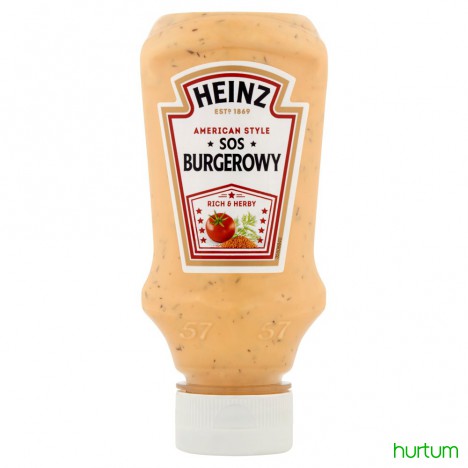 Nasza seria sosów jest inspirowana rodzimymi smakami z całego świata, od Ameryki po Francję, od Tajlandii po Turcję. Sos Burgerowy Heinz to śmietankowy, doskonale kremowy sos ze świeżymi pomidorami, szalotką i drobno posiekaną pietruszką. Idealny do hamburgerów, ale dodaje charakteru również codziennym kanapkom. Gwarantowana przyjemność do ostatniej kropli w butelce.