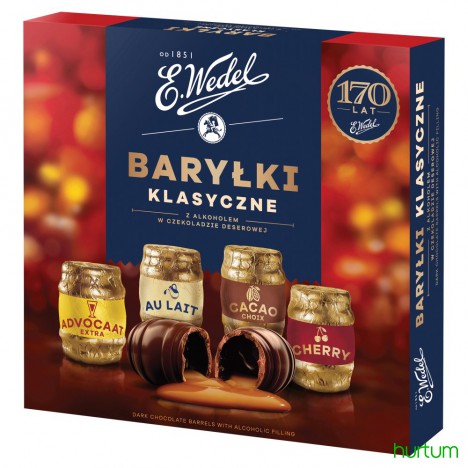 Baryłki czekoladowe z nadzieniem alkoholowym.