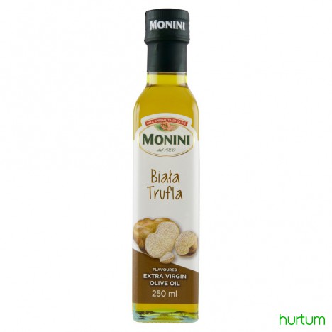 Aromatyzowana oliwa z oliwek extra vergine Monini o przyjemnym smaku Białej Trufli jest wysoko ceniona przez koneserów. Doskonale nadaje sie do makaronów, polania bruschetty, carpaccio oraz doprawiania zup i pieczeni. Wystarczy kilka kropel oliwy, aby nadać potrawom wyjątkowy i oryginalny smak.