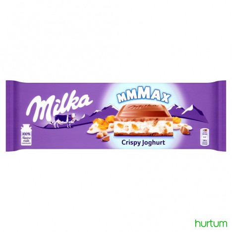 Czekolada mleczna z mleka alpejskiego z nadzieniem jogurtowym (48%) oraz mieszanką płatków kukurydzianych i ryżowych (5,5%).
