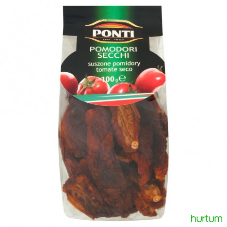 Świeże pomidory, które po zbiorze i umyciu, zostały ręcznie pokrojone, posolone i wysuszone na słońcu. Dzięki naturalnemu procesowi produkcji i pakowania zachowują intensywny czerwony kolor, typowy kwaskowaty smak świeżych pomidorów przywołujący aromaty kuchni południowych Włoch.
