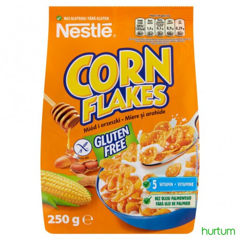 Nestlé Corn Flakes Miód i orzeszki Płatki śniadaniowe z miodem i orzeszkami 250 g