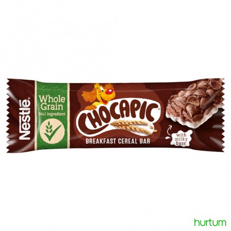 Płatki śniadaniowe w formie batonika, z witaminami i składnikami mineralnymi. 15% polewy z mlekiem.