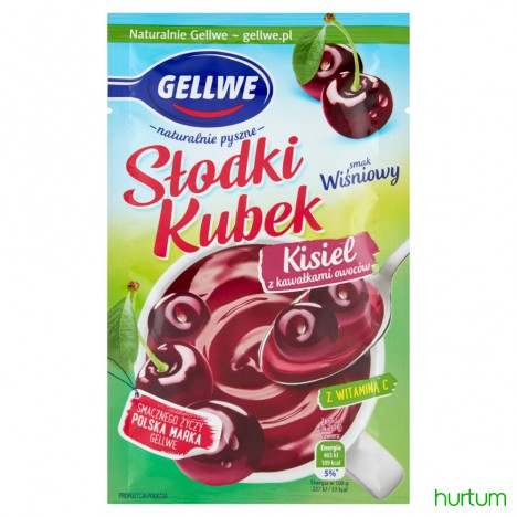 Kisiel w proszku o smaku wiśniowym z kawałkami owoców i witaminą C.