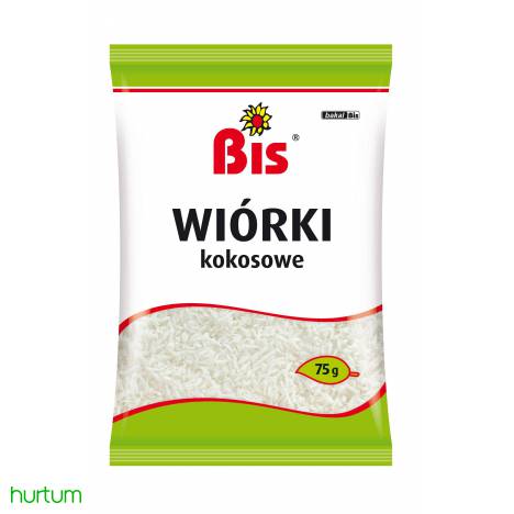 Wiórki kokosowe 75 g. Opakowanie zbiorcze 12 szt. - karton display.