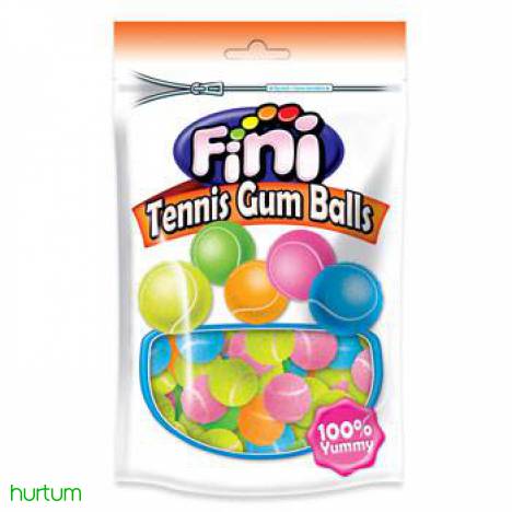Gumy do żucia w kształcie kolorowych mini piłeczek tenisowych Gumy o smaku owocowym Gumy bardzo smaczne ,wysoka jakość produktu. Produkt bezglutenowy!!Opakowanie - woreczek 180 g Cena brutto 1 kg : 5,97 zł Składniki: Cukier, syrop glukozowy, baza gumowa (lecytyna sojowa), aromaty, kwas: E296, substancja utrzymująca wilgoć: E422, barwniki: E100, E120, E133, E160c, E171. Wartość odżywcza w 100g: Wartość energetyczna: 1411 kJ / 332 kcal Tłuszcz: 0 g W tym kwasy tłuszczowe nasycone: 0 g Węglowodany: 83 g W tym cukry: 74 g Białko: 0 g Sól: 0,2 g Przechowywać w suchym i chłodnym miejscu. Wyprodukowano w Hiszpanii. Producent: Fini Golosinas Espana, S.L.U. Masa netto: 180 g