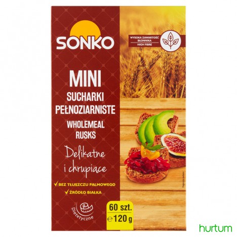Mini tosty z chleba, wypiekane na bazie pełnoziarnistej mąki pszennej z dodatkiem nasion sezamu.