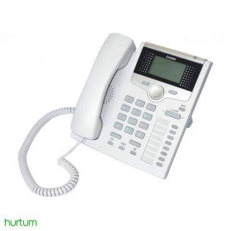 przyłączany przewodem RJ45 do sieci Ethernet, zalogowany do zasobów VoIP centrali