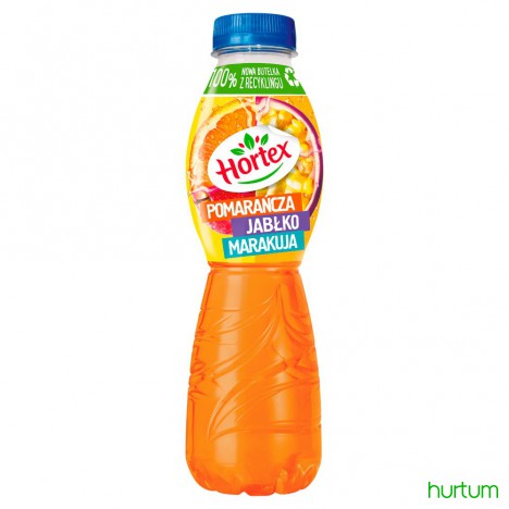 Napój wieloowocowy pomarańcza-jabłko-marakuja. Pasteryzowany. Niegazowany. Zawiera cukier i substancję słodzącą.