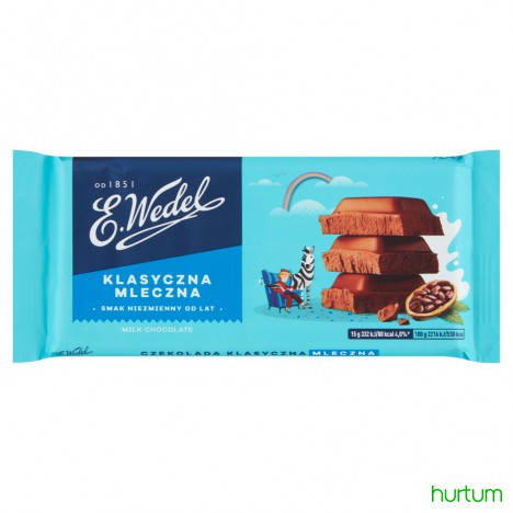 Smak wedlowskiej klasycznej czekolady mlecznej towarzyszy Polakom od lat. Niezmiennie aksamitny i wyraźnie kakaowy, z charakterystycznym długim czekoladowym posmakiem. Oryginalna wedlowska czekolada mleczna swoją niepowtarzalność zawdzięcza doskonalonym od pokoleń recepturom i szlachetnym ziarnom kakao sprowadzanym z Ghany.