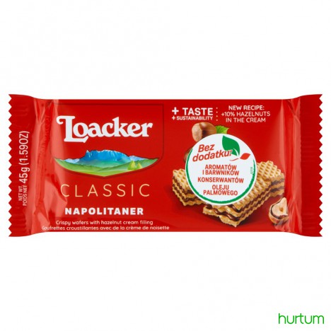 Chrupiące wafle przekładane kremem orzechowym (75%).