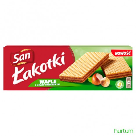 Wafelki z nadzieniem (71%) o smaku orzechowym.
