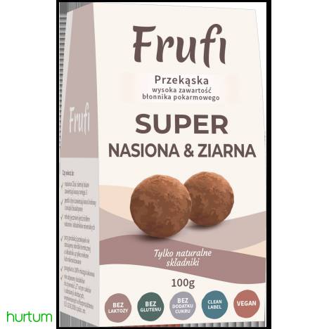 Przekąski wyprodukowane z wyselekcjonowanych surowców, odznaczających się wyjątkowymi właściwościami odżywczymi. Opracowaliśmy 3 warianty smakowe uwzględniając różne kategorie produktów. W taki sposób powstały: SUPERFOODS, SUPER OWOCE oraz SUPER NASIONA&ZIARNA. Serię SUPER dedykujemy osobom, które chcą zadbać o swoje zdrowie i dobre samopoczucie. SUPER NASIONA & ZIARNA Składnikami, m.in są: słonecznik, dynia, konopie, młody jęczmień czy sezam . Każdy z nich odznacza się wyjątkową super mocą wynikającą z wysokiej zawartości składników mineralnych. Smak lekko gorzki, sezamowy. NIE zawierają dodatków do żywności wymienionych w Rozporządzenie Komisji (UE) nr 1333/2008 z późn. zm. substancji słodzących barwników konserwantów przeciwutleniaczy i regulatorów kwasowości emulgatorów, środków zagęszczających, spulchniających, żelujących itp. substancji przeciwzbrylających wzmacniaczy smaku środków słodzących, nabłyszczających i innych stabilizatorów, konserwantów, zagęstników i innych NIE stosujemy obróbki termicznej a składniki są tylko mikronizowane, co pozwala na zachowanie właściwości odżywczych i pełni smaku każdego składnika. Drobne cząstki składników łatwiej przyswajane są przez układ pokarmowy i dają komfort konsumpcji. Produkt może zawierać śladowe ilości migdałów, orzechów laskowych, otrąb owsianych.