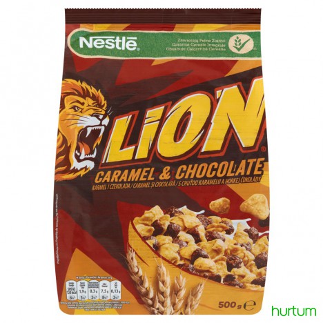 Płatki śniadaniowe z czekoladą (3%) i pastą karmelową (4,7%), z witaminami i składnikami mineralnymi.