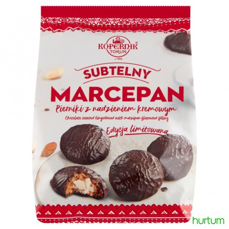 Nasi Mistrzowie Piernikarscy stworzyli specjalną kompozycję z korzennego ciasta oraz subtelnego kremowego nadzienia o smaku marcepanu.