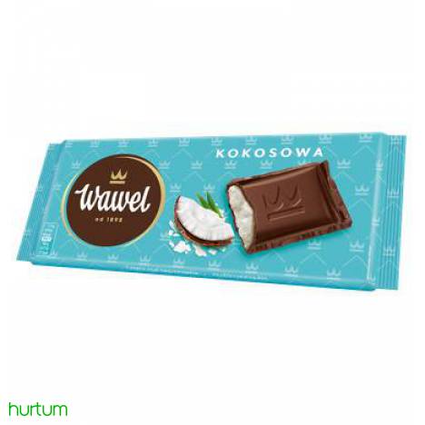 Idealne połączenie przyjemnie kokosowego, puszystego wnętrza z dużą ilością wiórków kokosa, ze szlachetną czekoladą Wawel.