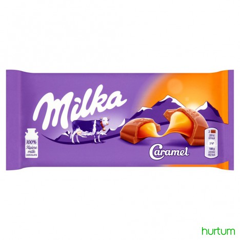 Czekolada mleczna z mleka alpejskiego z nadzieniem karmelowym (40%).