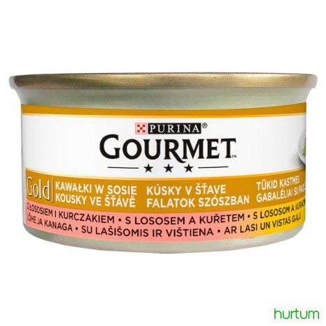 Nawet najbardziej wybredne z kotów będą zachwycone Gourmet Gold: menu wykwintnych dań, które różnorodnością tekstur i smaków rozpieszczają wyrafinowane podniebienia każdego dnia. Właśnie dlatego stworzyliśmy GOURMET® Gold Kawałki W Sosie. Delikatnie gotowane kawałki mięsa lub ryby zanurzone w smakowitym sosie. Jego mruczenie jest nieuniknione.