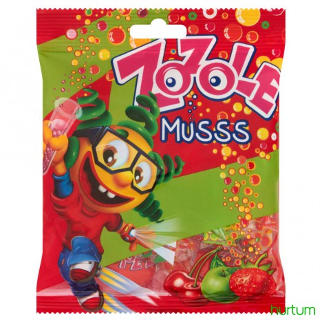 Karmelki nadziewane o smaku jabłkowym, truskawkowym i wiśniowym z nadzieniem musującym.