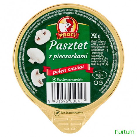 Pasztet z pieczarkami, drobiowo-wieprzowy. Produkt sterylizowany.