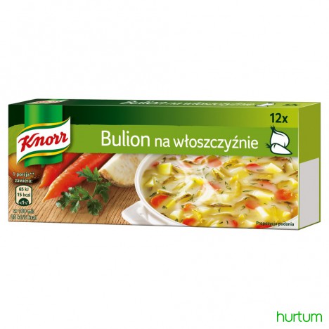 Kostki bulionowe królują na naszych stołach od wielu lat. Jest w nich zamknięta gwarancja dobrego smaku oraz pewność odpowiednio dobranej ilości przypraw i ziół. Używając kostki Bulion na włoszczyźnie Knorr, możesz być pewien, że znajdziesz smak, którego poszukujesz.